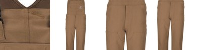 - Two slack-style front pockets, two back patch pockets with spade pocket flaps and snap closures, two patch leg pockets with inverted center pleat, one piece pocket flap with mitered corners, two snap closures