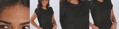 - Self-material main body set-in mitered V-neck with bar tack reinforcement