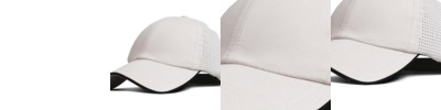 100% polyester; moisture-wicking; performance sweatband; pre-curve, 6-panel cap; hair-friendly hook & loop closure; adjustable strap; silicone cat logo on back;