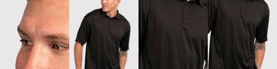 100% polyester wicking knit; 92% polyester, 8% spandex wicking pinhole mesh underarms; Color secure technology helps prevent dye migration; V-neck collar; Raglan sleeves; Contoured bottom; Tagless label;