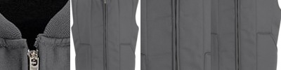- 1x1 rib with spandex cuffs and bottom band for enhanced stretch and recovery