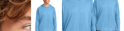 A top choice for sports and exercise, this hooded long sleeve tee combines a comfortable fit with performance features such as moisture wicking and sun protection.