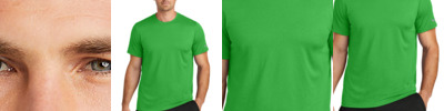 This Nike performance tee features sweat-wicking fabric to help keep you dry and comfortable. Durable rib knit crew neck. Heat transfer label for tag-free comfort. Double-needle stitching throughout. Contrast heat transfer Swoosh design trademark on left sleeve. Made of 4.7-ounce, 60/40 cotton/poly Dri-FIT fabric.