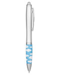Retractable curvy Plastic barrel ballpoint pen with cloud or technology theme stock art comfort grip