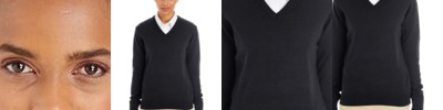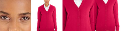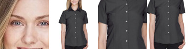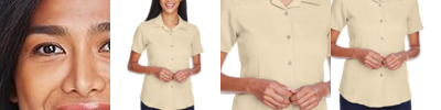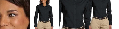 - Three-button narrow placket with dyed-to-match buttons for feminine look