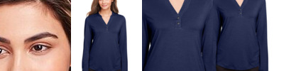 6 oz./yd² (US), 10 oz./L yd (CA), 100% recycled polyester Coolcore® technology pique Moisture-wicking performance UPF 50+ protection Thermal regulating Self-fabric collar with integrated collar stays Open V-neck placket Side vents Matching knit cuffs Sustainable fabric manufacturing practices. Learn more at Coolcore.com