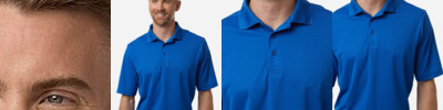4 oz/yd², 100% recycled polyester pique Moisture-wicking performance UPF 50+ protection Antimicrobial properties Active fit V-neck placket with blade collar Tear away label