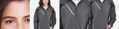 3.9 oz./yd²/132 gsm (US), 6.5 oz./L yd (CA) Shell: 100% polyester twill, with water resistant and cire finish Shell Lining; Polyester taffeta Liner Jacket: 7.7 oz Polyester anti-pill fleece Storm flap with hidden snaps at top and bottom Inside placket; roll-away hood; adjustable cuffs with tabs Lower concealed pocket with zippers and reflective toggles Audio port access through inside left pocket Thermal retention shockcord at hood and drop back hem Reflective piping at shoulder yoke and upper back panels Inside placket on liner Center-front reversible zipper Lower concealed pockets with autolock zippers Audio port access through inside left pocket
