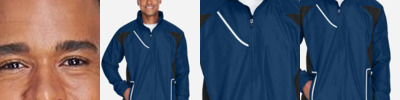 9 oz./yd² (US), 15 oz./L yd (CA), 96/4 polyester/spandex bonded with brushed tricot with inner membrane 3,000 mm waterproof rating; 1,000 g breathability rating Center front dyed-to-match reverse coil zipper with semi-autolock rubber pull tab and chin guard Zippered front welt pockets Open hem cuffs Double-needle stitching at hem and cuffs Open hem with drop back bottom