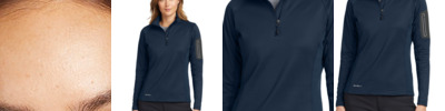 Smooth-faced fleece with a subtle grey print gives this 1/2-zip a sleek performance look. Reverse coil zipper, open cuffs and an open hem. Princess seams, welded zippered left sleeve pocket, contrast Eddie Bauer heat transfer logo on right hem. Made of 7.7-ounce, 95/5 poly/spandex.