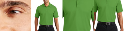 An allover embossed tonal tri-blade pattern gives this polo a sophisticated edge while Dri-FIT moisture management technology delivers breathable performance. Design features include a self-fabric collar, three-button placket and open hem sleeves. A contrast heat transfer Swoosh design trademark is on the left sleeve. Made of 5.29-ounce, 100% polyester Dri-FIT fabric.