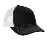 This two-toned cap features breathable mesh and contrast stitching on the bill. Fabric: 100% cotton twill front panels and bill (Solids) 65/35 polyester/cotton twill front panels and bill (Heathers) 100% polyester mesh mid and back panels Structure: Structured Profile: Mid Closure: 7-position adjustable snapback Please note: The previous style number for this cap was the C112. The materials, fit, colors and quality are unchanged.